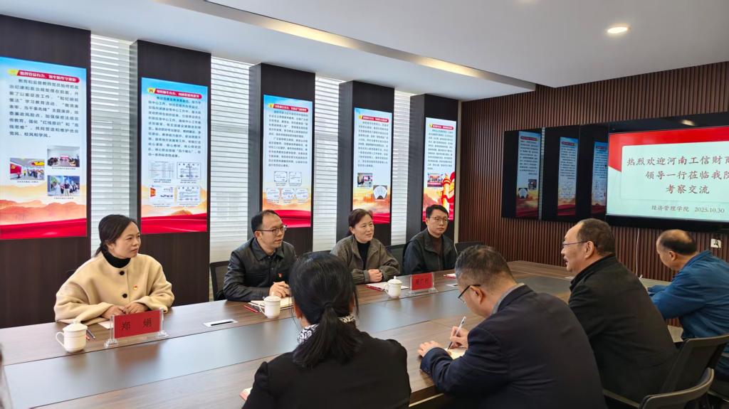为深入学习贯彻新时代党的建设总要求,探索党建引领下教育发展新路径,10月30日上午,我院党总支书记周广利、院长李志远一行4人到焦作大学经济管理学院考察交流,经济管理学院领导班子成员参加了本次座谈会。