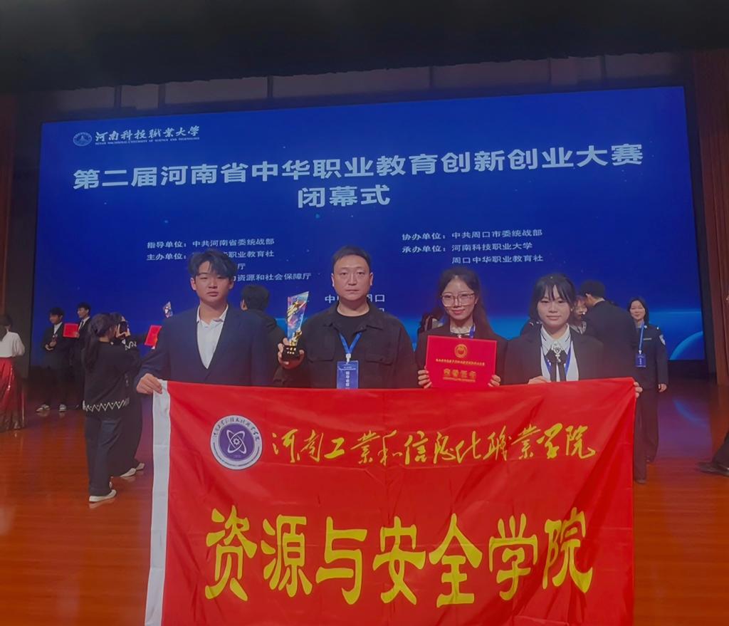 2025年11月6日,河南省第二届中华职业教育创新创业大赛总决赛在周口市落下帷幕,我校由赵磊、王凯两位老师指导的《矿髓重构者——矿井围岩多浆协同注浆加固系统》项目突出重围,喜获大赛一等奖。