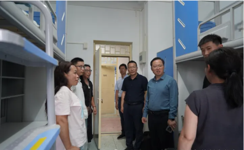 校党委书记尹彦礼、校长史先进走进3号宿舍楼亲切慰问大一新生。领导们仔细查看住宿环境,关切地询问新生“行李都安顿好了吗”“对宿舍条件还满意吗”“离家这么远,生活上有没有不适应的地方”。在与新生的交流中,领导们耐心倾听大家初入校园的感受,从行李搬运、食堂就餐等生活细节,到专业学习、社团选择等未来规划,一一细致叮嘱;同时鼓励同学们尽快适应集体生活,主动结识新朋友,在接下来的军训和学习中锤炼意志、增长本领,在校园收获成长与进步。