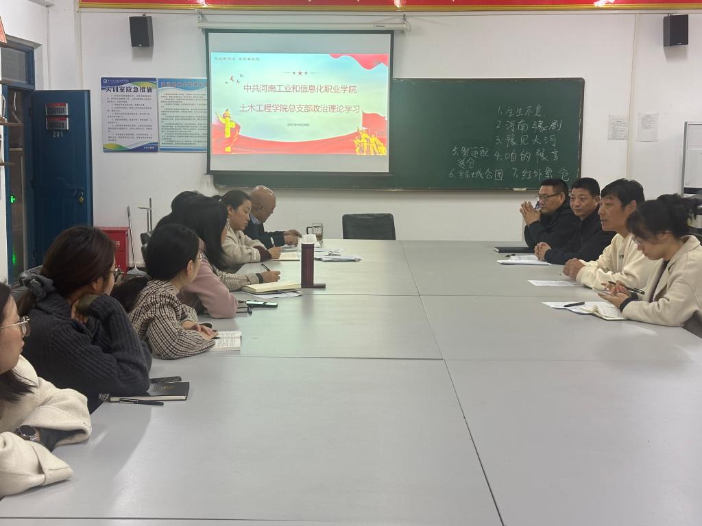 为深入学习贯彻习近平新时代中国特色社会主义思想,进一步提升全体党员的政治理论素养和履职能力,2025年10月28日下午,土木工程学院党总支在201实训室组织召开政治理论学习会议。会议由学院党总支全体党员参加,党总支书记苏涛涛主持。