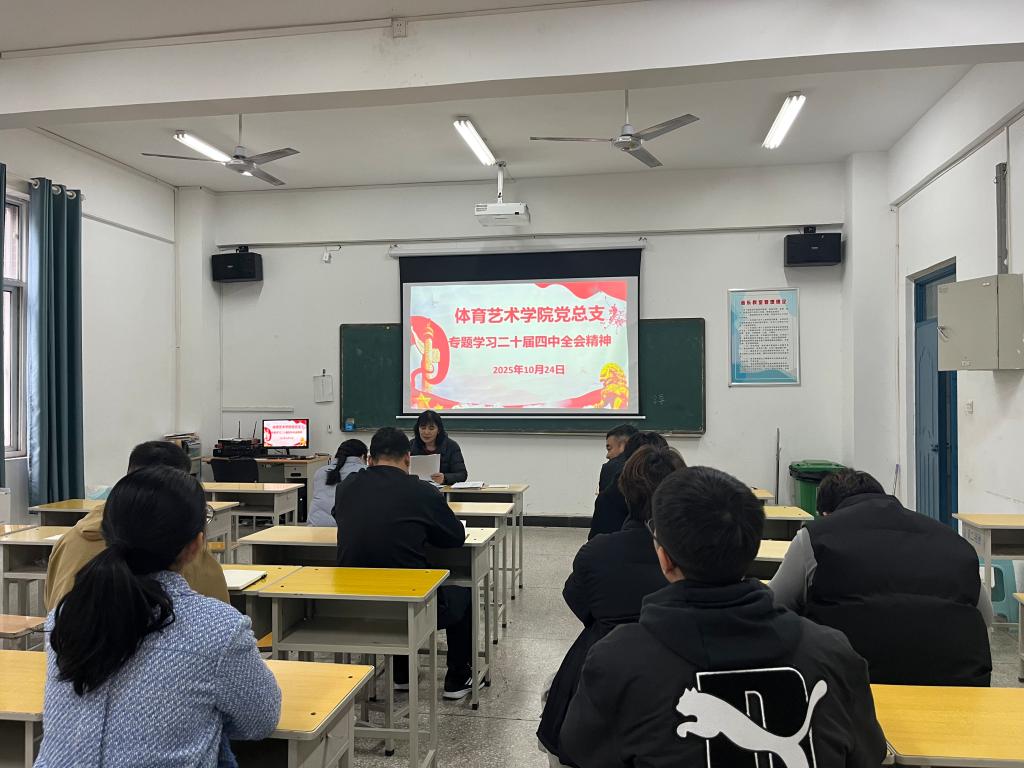 为深入学习贯彻党的二十届四中全会精神,切实把支部党员的思想和行动统一到党中央决策部署上来,10月24日,体育艺术学院全体党员组织开展政治理论专题学习活动。通过“书记领学+专题研讨”的学习模式,推动全会精神在体育艺术学院落地生根。
