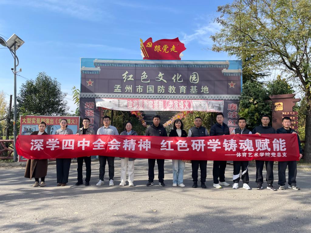 为深入学习贯彻习近平新时代中国特色社会主义思想和党的二十届四中全会精神,引导党员干部从红色历史中汲取精神养分与奋进力量,11月14日,体育艺术学院全体党员赴孟州市岩山村红色教育基地、孟州市国防教育基地开展“深学四中全会精神 红色研学铸魂赋能”红色研学教育活动。