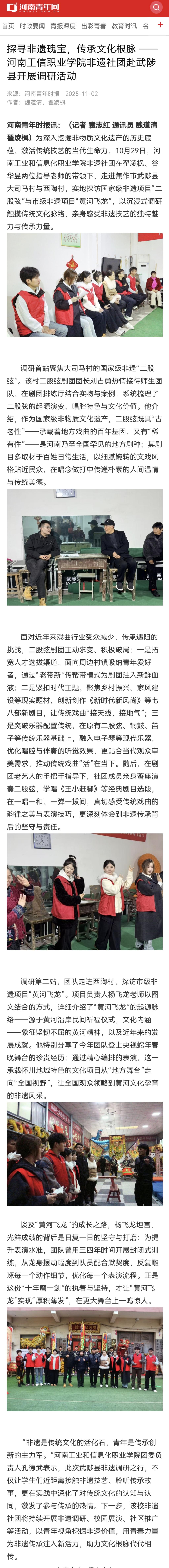 《河南青年网 2025-11-02》报道我校探寻非遗瑰宝,传承文化根脉
