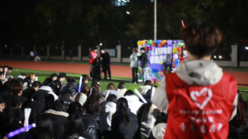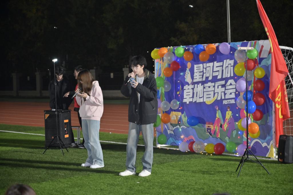 当秋夜的晚风拂过校园,当璀璨的星光点亮夜空,一场属于青春与音乐的盛宴在绿茵场悄然启幕。为进一步丰富校园文化生活,营造浸润式艺术氛围,践行“五育并举”育人初心,11月11日晚,交通学院“星河与你”草坪音乐会在校足球场温情开演。本次活动以“音浪无限,嗨翻星河”为主题,用旋律编织青春记忆,用歌声传递校园温情,吸引了数百名师生席地而坐、共赴这场秋日音乐之约。