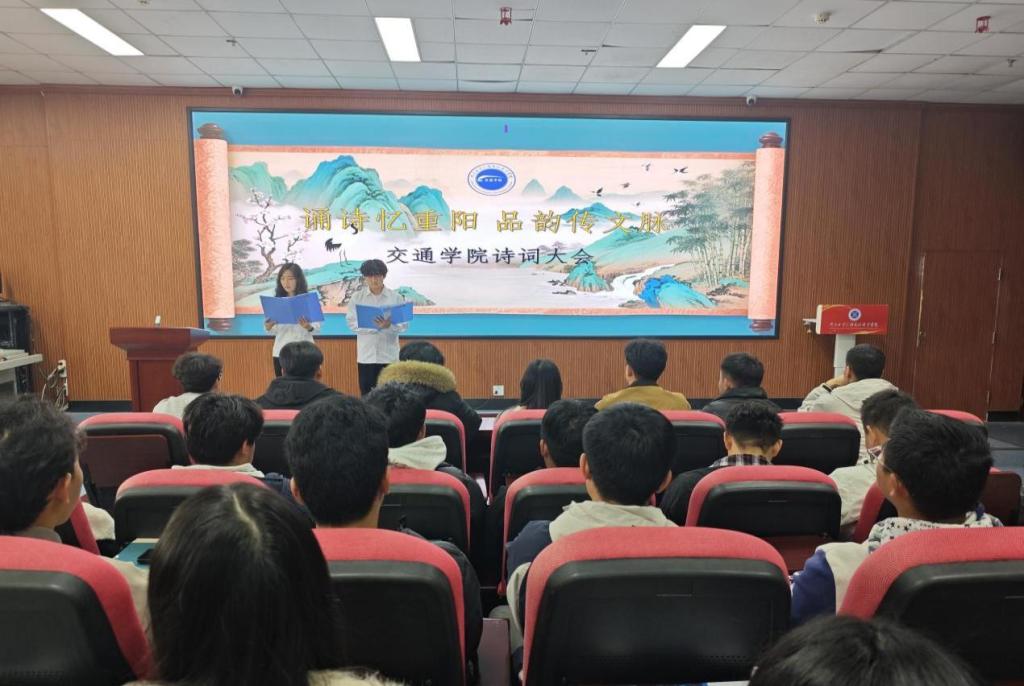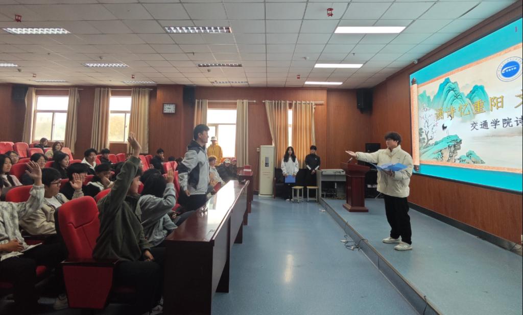 岁岁重阳,今又重阳。为丰富学生的校园生活、涵养诗词素养、陶冶人文情操,进一步厚植校园古典诗词文化氛围,10月28日下午,我院“诵诗忆重阳 品韵传文脉”重阳节诗词大赛在第四会议室温情启幕。本次赛事由车辆24-1班孙铨霖、车辆25-1班苗冯鑫两位同学联袂主持,特邀孙明灏、罗凯两位辅导员老师担任评委,共赴一场诗词与秋日的文化之约。