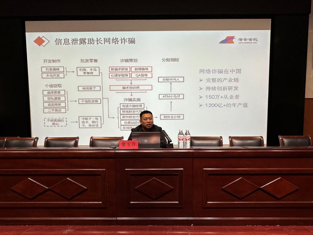 常玉存总经理立足行业实践,全景式解析了网络安全领域的发展态势。他指出随着信息技术的快速发展和网络应用的广泛普及,网络安全问题日益突出,网络安全行业迎来了前所未有的发展机遇。同时,他还为同学们提供了宝贵的职业规划建议,帮助同学们明确职业目标和发展方向。