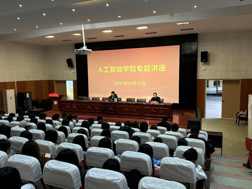 在建校五十周年之际,10月16日下午人工智能学院在多功能报告厅面向二年级学生推出"科技前沿与职业发展"系列讲座。活动特邀科大讯飞高教事业部华中区域总监宋红培高级工程师、河南信安世纪科技有限公司校企合作部总经理常玉存两位行业专家,分别就人工智能技术发展与网络安全职业规划作专题报告,既助力学生专业成长,又为校庆献上学术贺礼。
