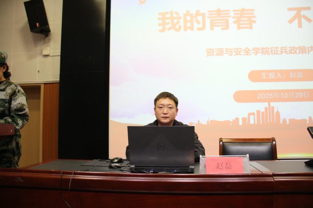 活动伊始,赵磊主任为在场同学带来了内容详尽的征兵政策宣讲。从国家战略、个人成长与未来发展等多个层面,深入浅出地分析了大学生应征入伍的重大意义。宣讲重点围绕同学们最为关心的报名条件、学业保障、升学优惠、经济补助、就业扶持、报名具体流程等核心政策进行了逐条解析,将复杂的条文转化为清晰的“人生发展账”,让同学们深刻认识到参军入伍既是履行光荣义务,也是一次宝贵的人生发展机遇。