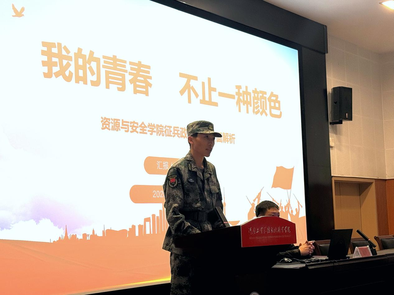 本次会议分为三项议程,首先由我院学生工作办公室主任赵磊作汇报分享。通过“政策解读”“榜样引领”“答疑解惑”三个维度,全方位、多角度地展示了当代大学生携笔从戎的壮阔图景。