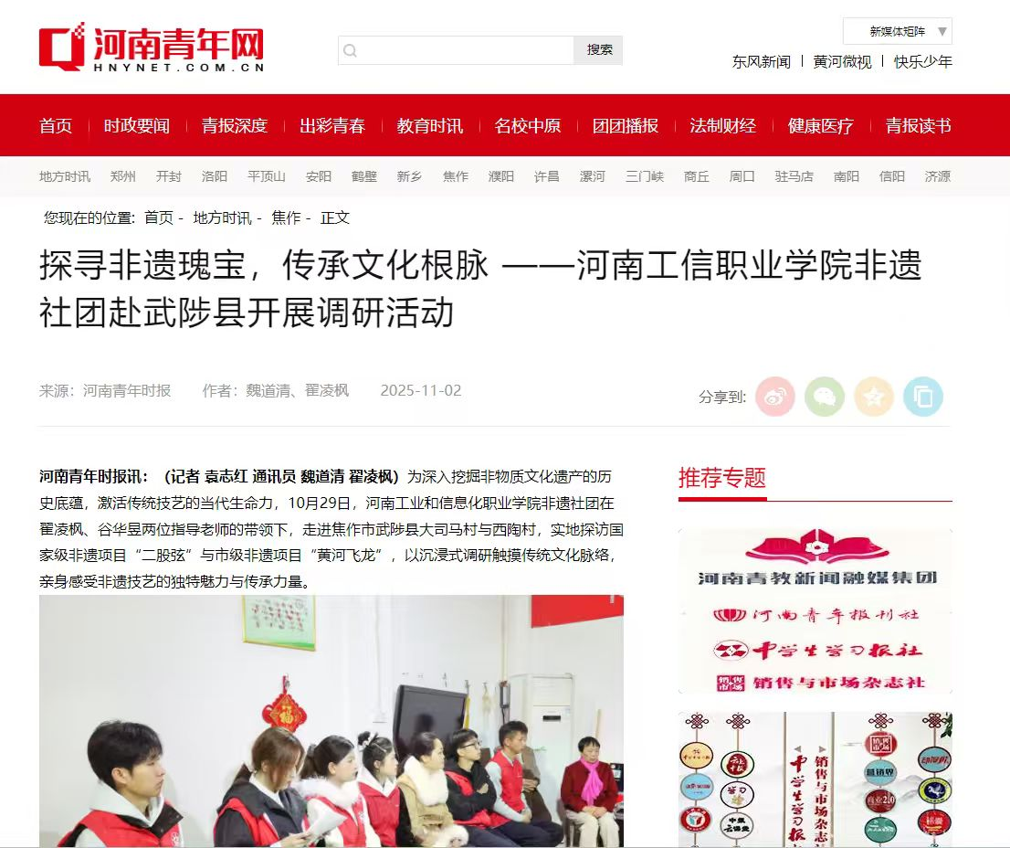 非遗团队事迹被《河南青年网》报道